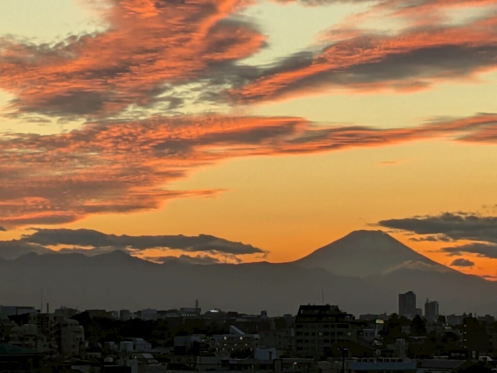 答えは富士山。では無く、『会社から見える富士山』でした!こちらは弊社取締役の石谷が夕方に撮影したもので、あまりの美しさに社内のボルテージは最高潮でした。